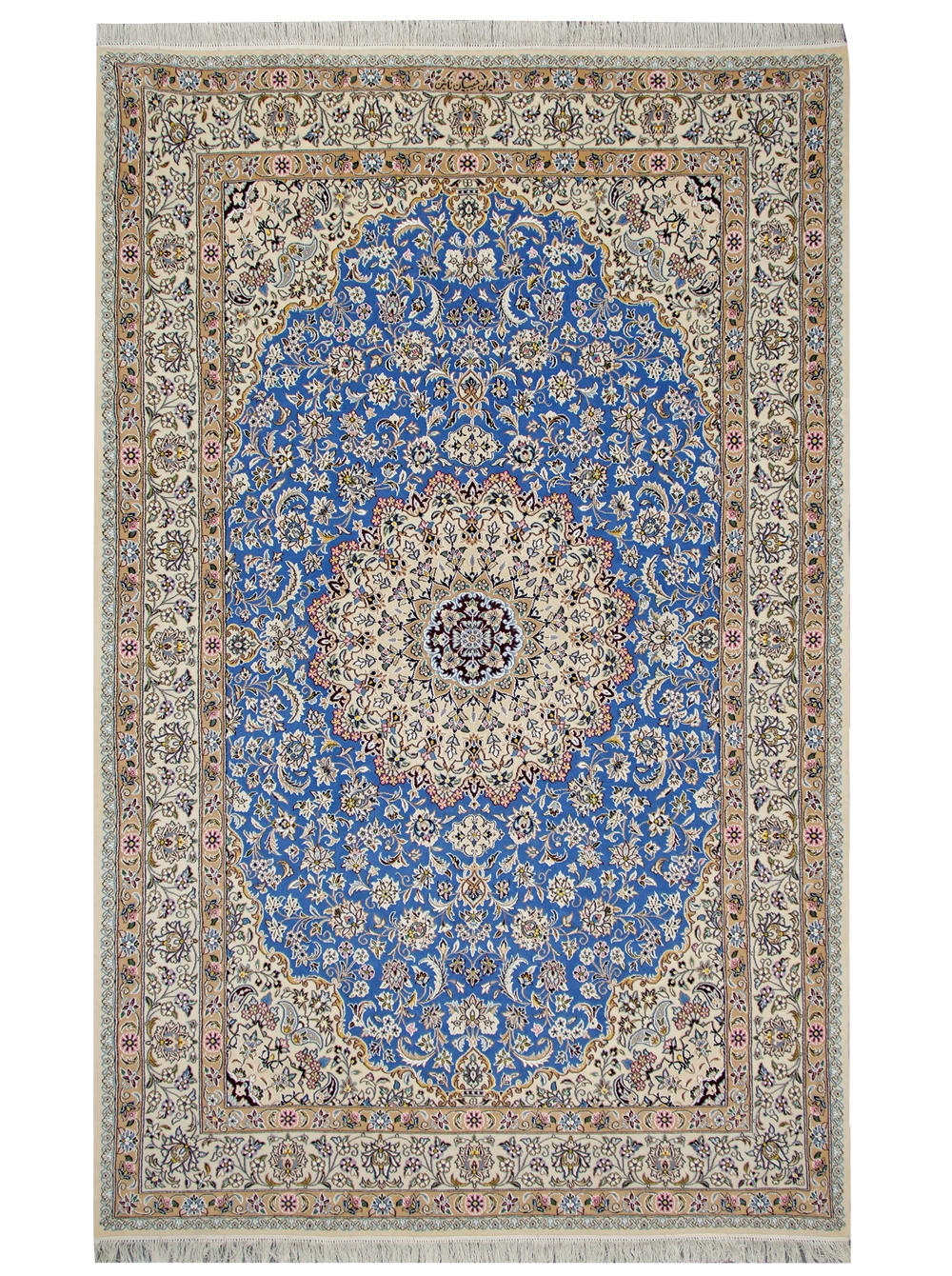 産地:イラン ナイン 工房: ハビビアン サイズ:約205ⅹ320㎝ 品質:毛100% 商品番号:31087092 首都テヘランと古都イスファハンの中間に位置する、古くから伝統工芸を中心に栄えたオアシス都市。 デザインは、白やベージュを基調とした古典的なメダリオンデザインが多く制作されています。 ベージュにブルーやレッドなどビビッドカラーの組み合わせも、ナインの特徴的なカラーリングです。