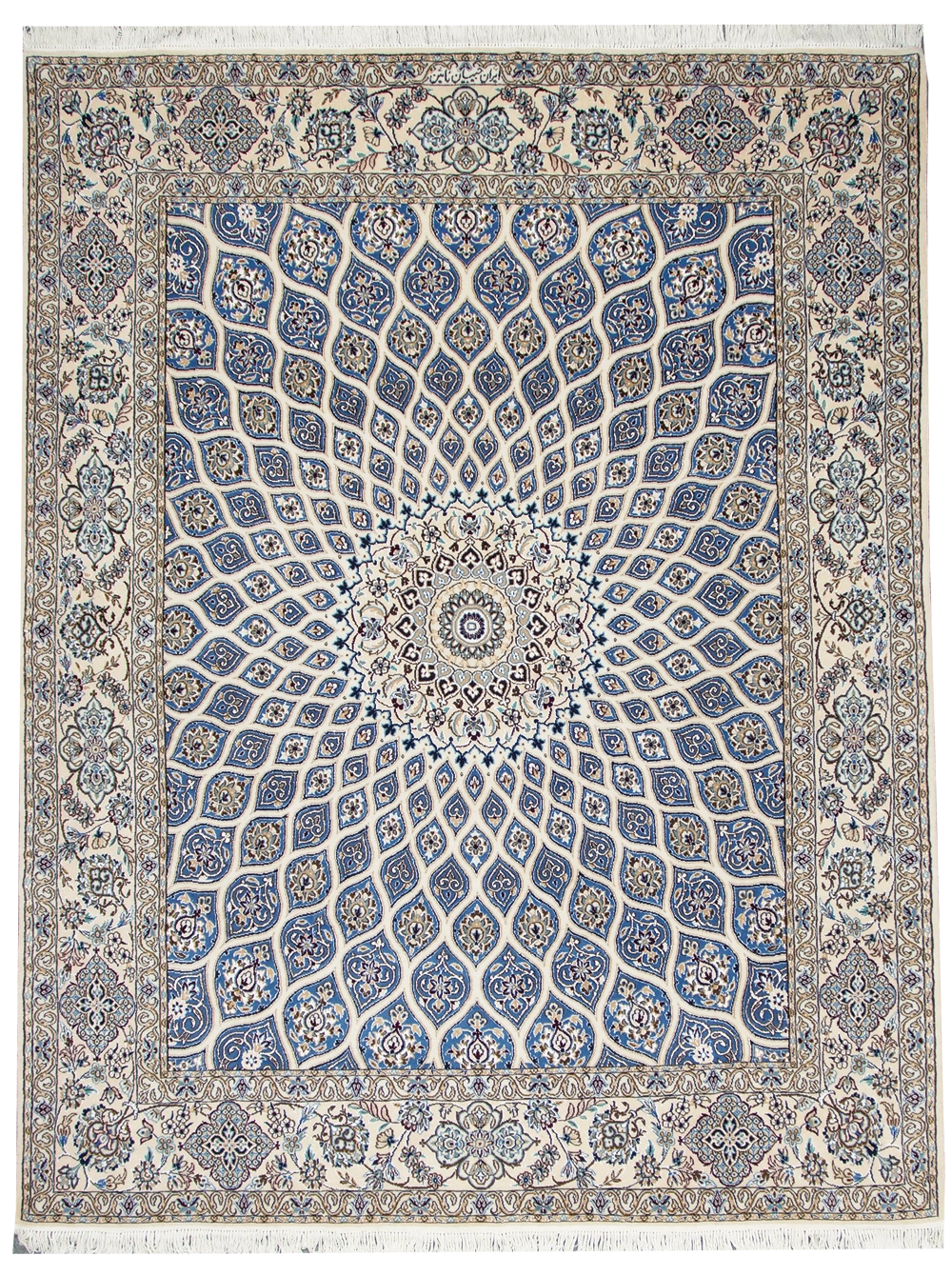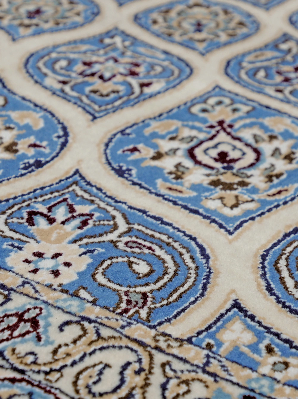 産地:イラン ナイン 工房: ハビビアン サイズ:約195ⅹ250㎝ 品質:毛100% 商品番号:31087100 首都テヘランと古都イスファハンの中間に位置する、古くから伝統工芸を中心に栄えたオアシス都市。 デザインは、白やベージュを基調とした古典的なメダリオンデザインが多く制作されています。 ベージュにブルーやレッドなどビビッドカラーの組み合わせも、ナインの特徴的なカラーリングです。