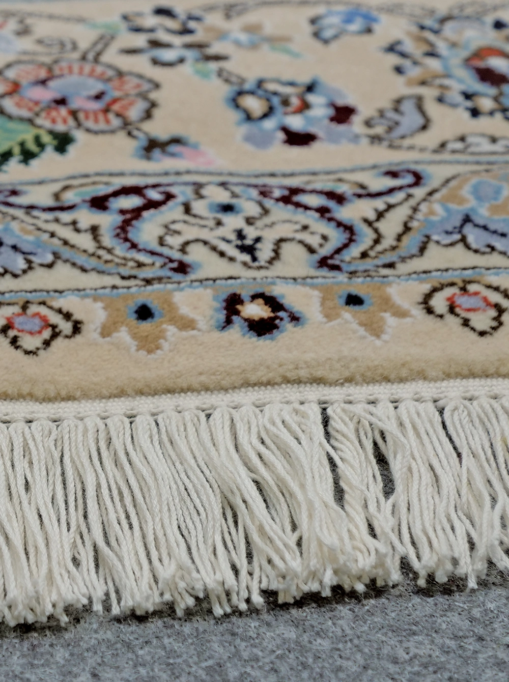 産地:イラン ナイン 工房: ハビビアン サイズ:約205ⅹ250㎝ 品質:毛100% 商品番号:31087101 首都テヘランと古都イスファハンの中間に位置する、古くから伝統工芸を中心に栄えたオアシス都市。 デザインは、白やベージュを基調とした古典的なメダリオンデザインが多く制作されています。 ベージュにブルーやレッドなどビビッドカラーの組み合わせも、ナインの特徴的なカラーリングです。