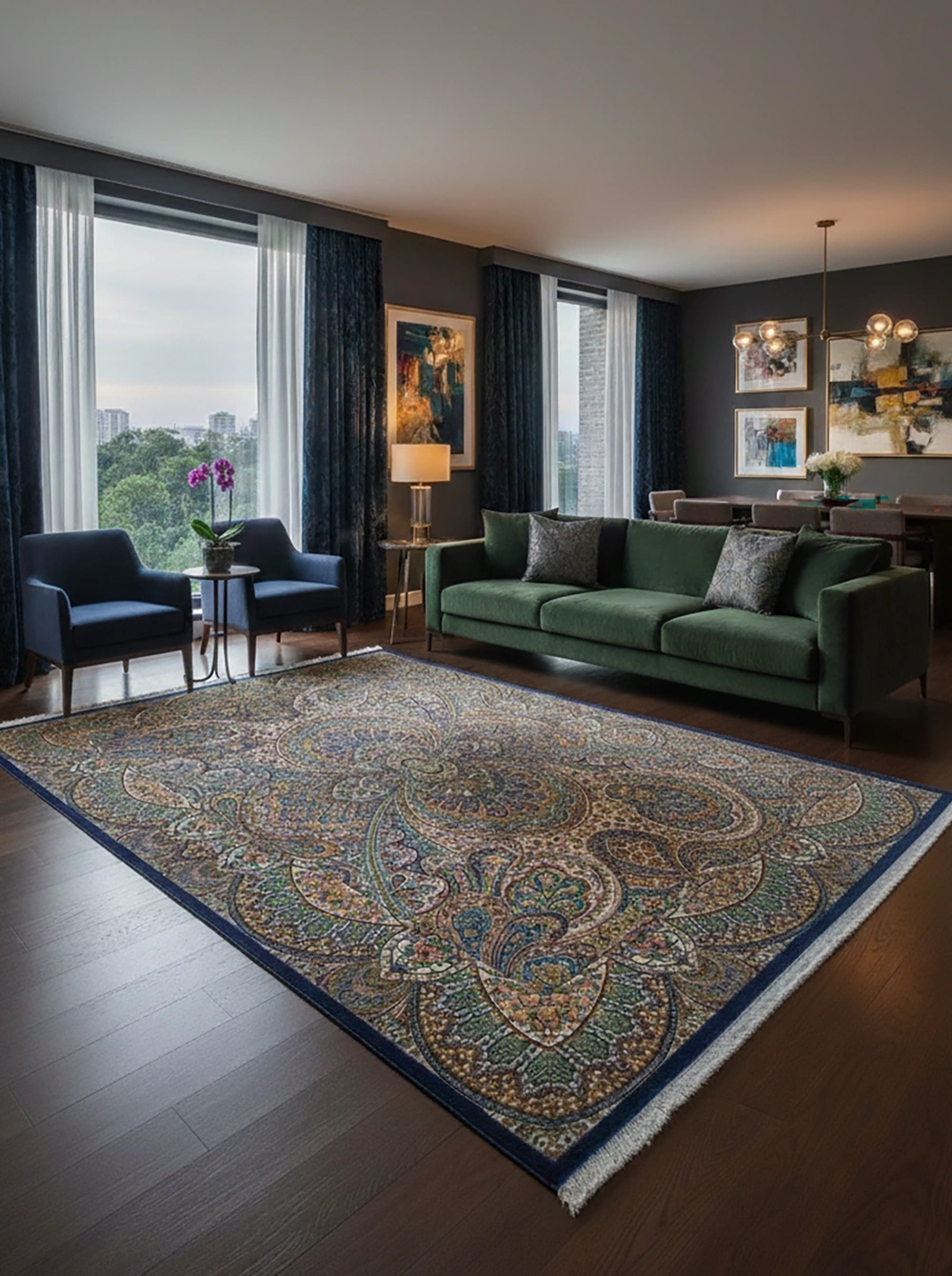 ペルシャ絨毯の様な高級感が特長のハイクオリティ機械織り絨毯。
