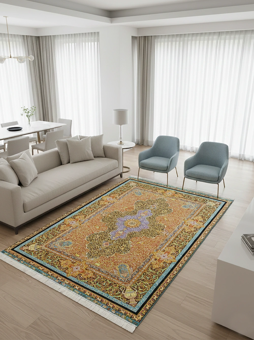 ペルシャ絨毯の様な高級感が特長のハイクオリティ機械織り絨毯。