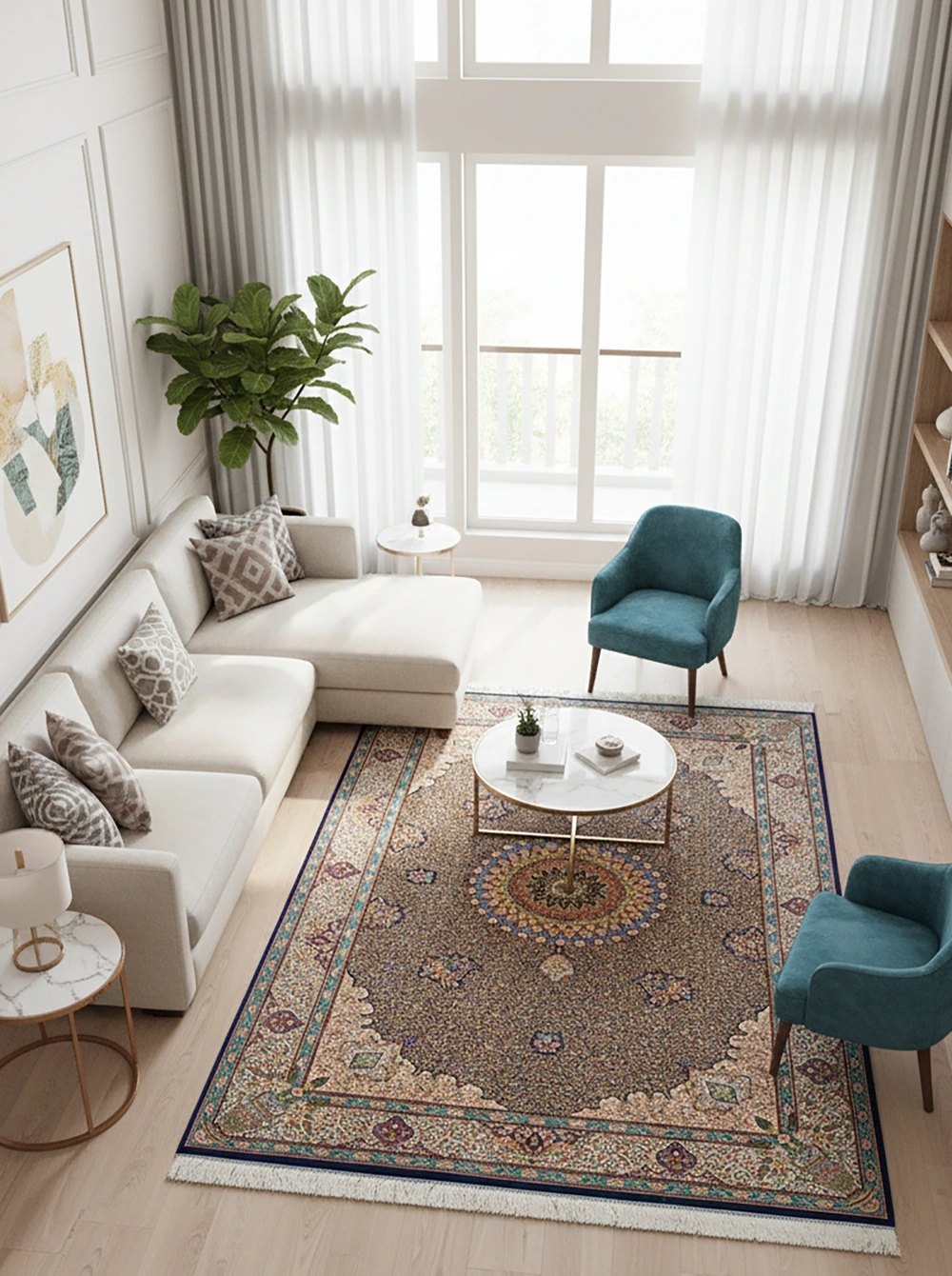 ペルシャ絨毯の様な高級感が特長のハイクオリティ機械織り絨毯。