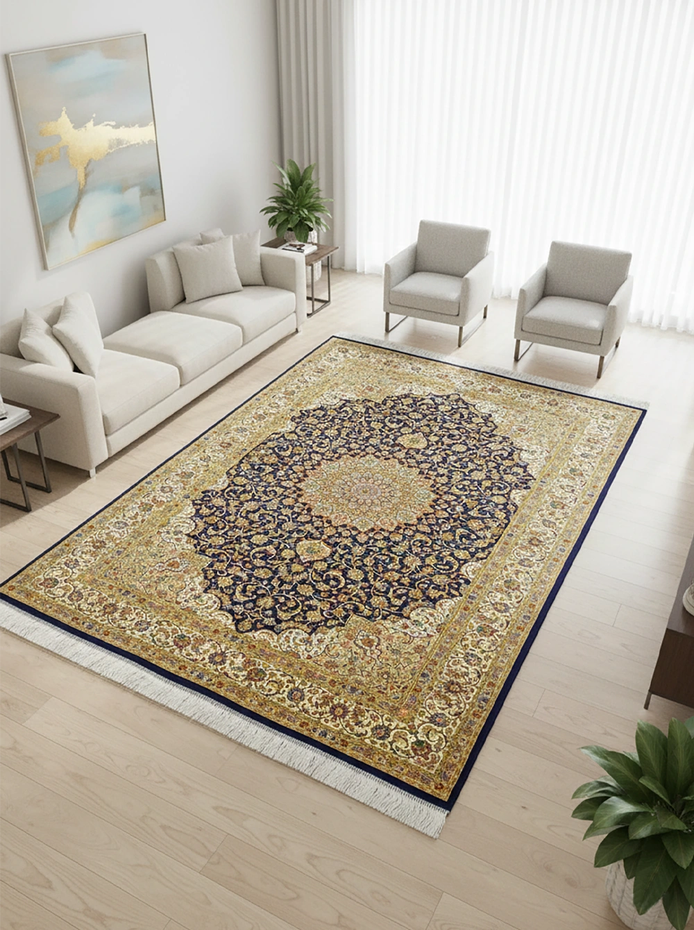 ペルシャ絨毯の様な高級感が特長のハイクオリティ機械織り絨毯。