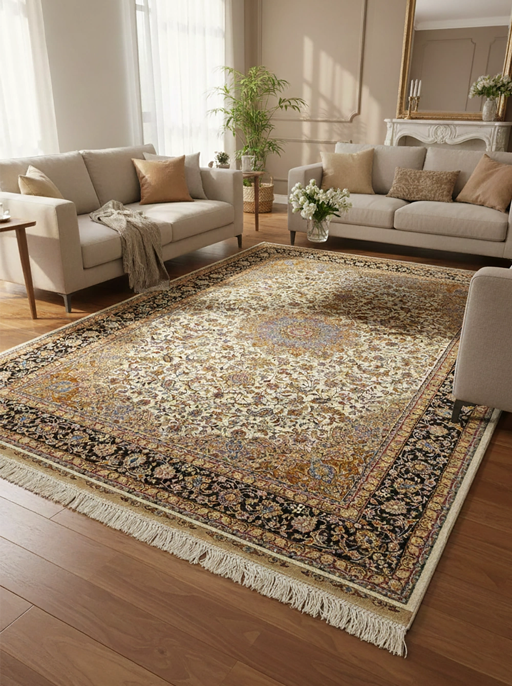ペルシャ絨毯の様な高級感が特長のハイクオリティ機械織り絨毯。