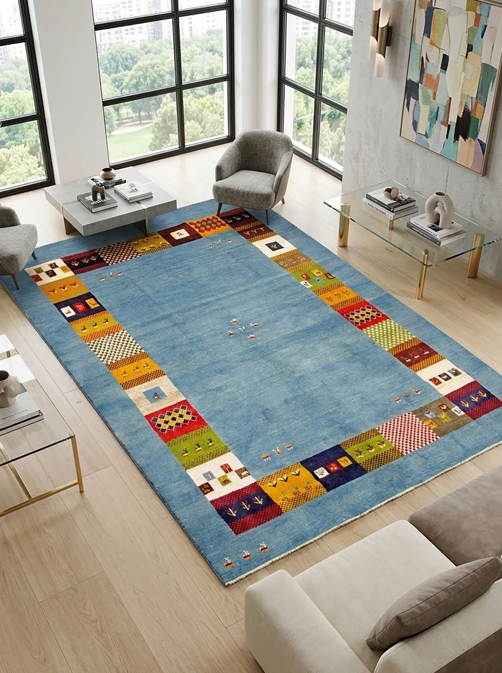産地:ペルシャギャッベ サイズ:約196ⅹ293㎝ 品質:毛100% 商品番号:31094416 ペルシャギャッベとは、ペルシャのザグロス山脈に暮らす遊牧民によって織られている、伝統的な手織り絨毯です。 毛足が長く厚みがあり、ふかふかとした踏み心地と高い保温性を兼ね備えています。 また非常に丈夫で、使い込むほどに風合いが増し、長くご愛用いただけます。