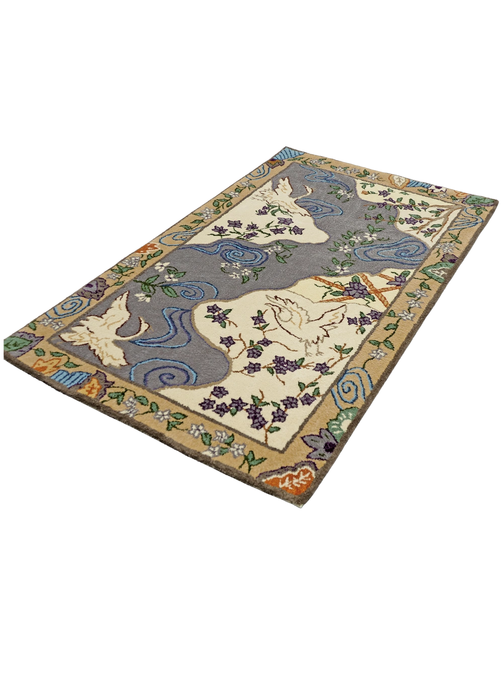 今回、歴史的なアーカイブデザインとして、日本最古の木綿緞通の織元 鍋島緞通吉島家とのコラボレーション制作で復刻しました。